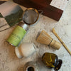 All the essentials for the perfect matcha at home. This set pairs our stone-milled matcha - rich in umami and fresh grassy notes with a gentle nutty sweetness - together with a bamboo whisk, wooden scoop, sieve and a ceramic holder to keep your whisk dry and maintain its shape. Everything you need to create a perfectly smooth, frothy cup.